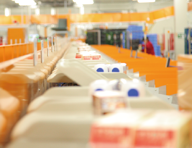 受注情報をスピーディに搬送システムと連結し、入荷処理から仕分け処理、出荷検品までの完全自動化を実現。